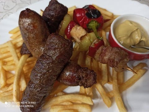 Contine: 2 mici, 2 carnaciori, 2 frigarui, cartofi prajiti, mustar.